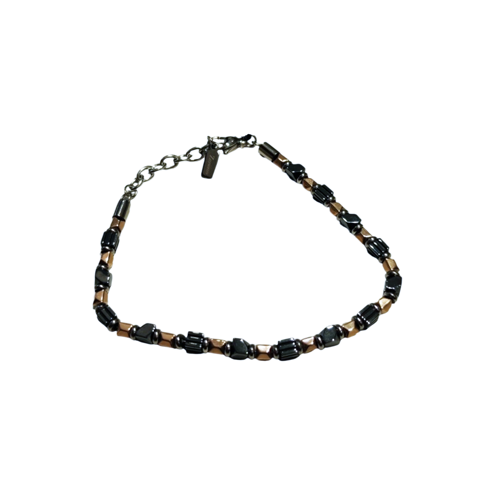 Bracciale In Acciaio 316L Ipoallergenico Con PVD Rosè E Nero, Maglia Geometrica Formata Da Rondelle E Cubi.