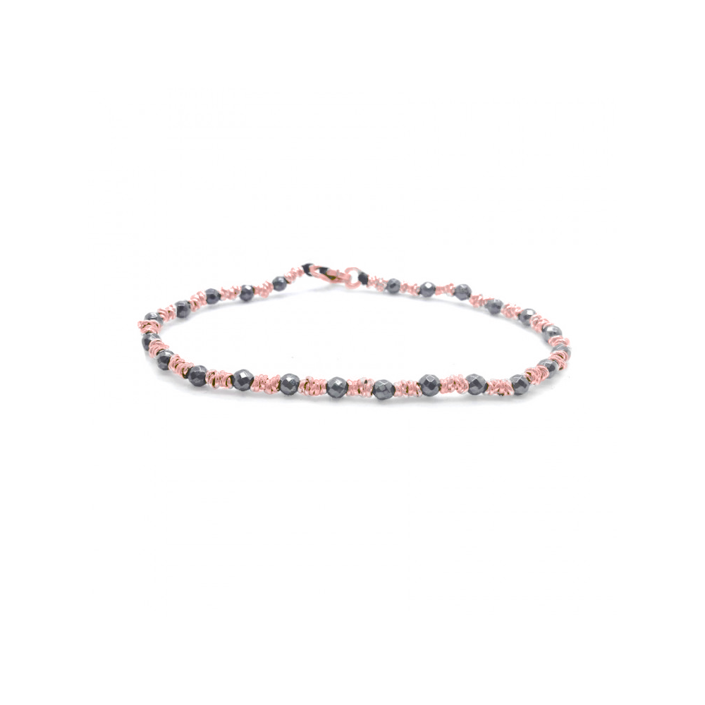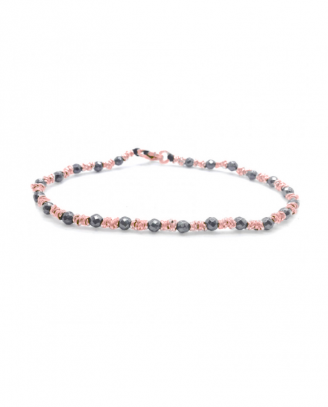 Bracciale In Metallo Realizzato Con Anellini In Argento 925% Rosé Ed Ematite.