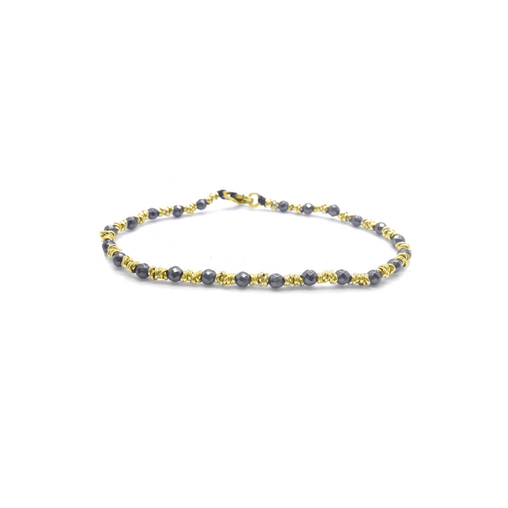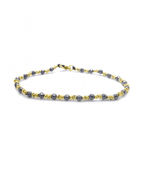 Bracciale In Metallo Realizzato Con Anellini In Argento 925% Dorati Ed Ematite.
