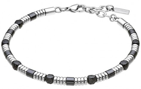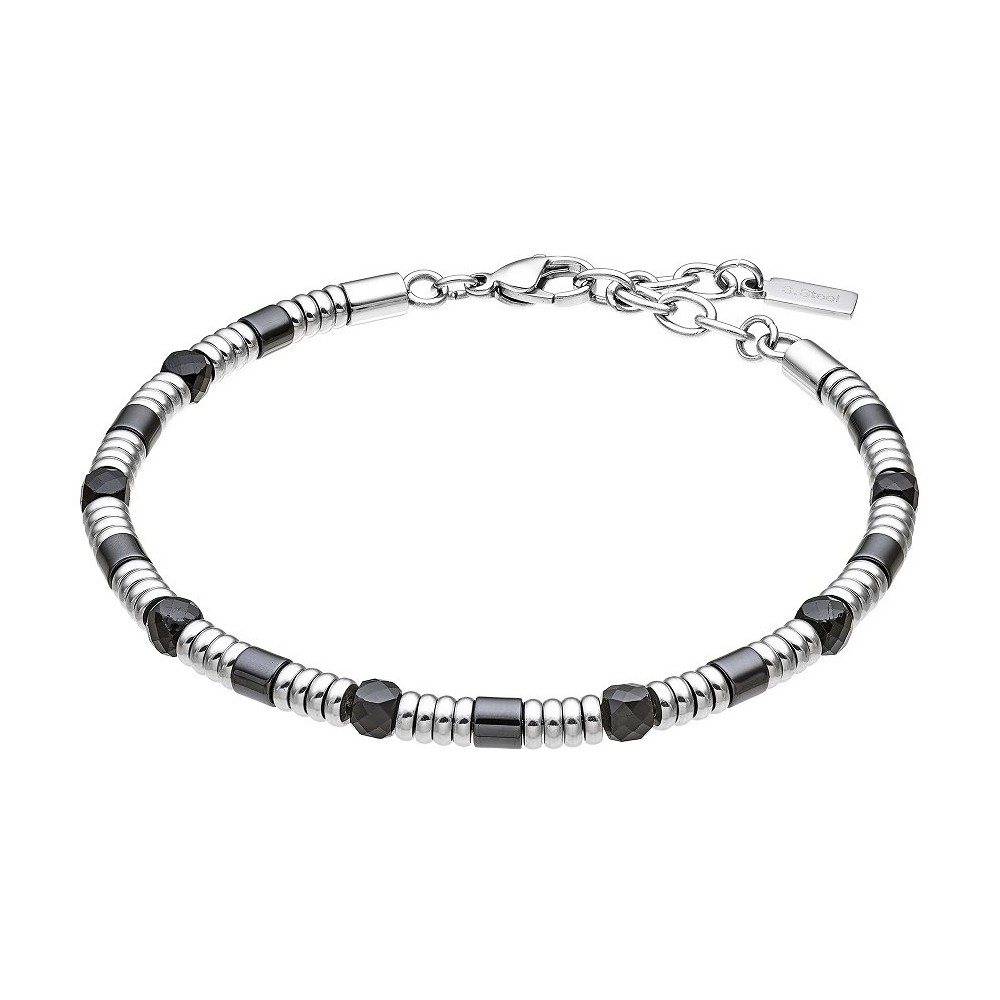 Bracciale In Acciaio 316L Ipoallergenico Composto Da Dischetti E Pepite Nere.