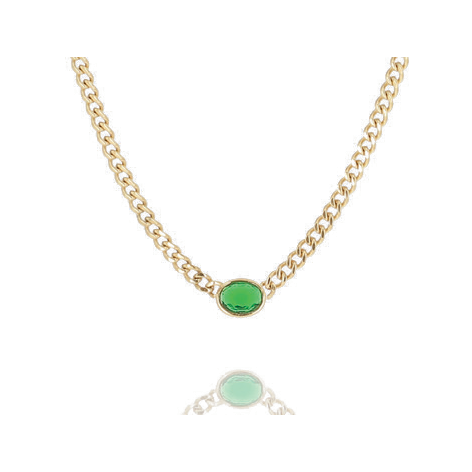 Collana In Acciaio Dorato Con Oro Fino E Pendente Da 1 Cm Con Pietra Verde.