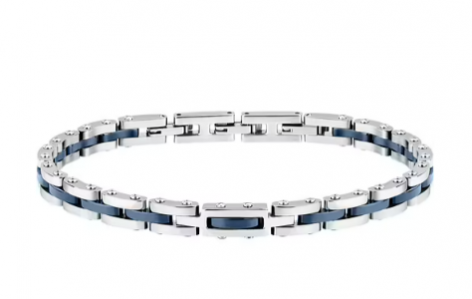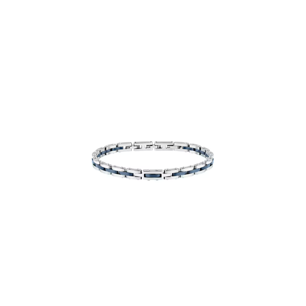 Bracciale In Acciaio Modello A Maglia Con Piastre In Ceramica Lucida blu.