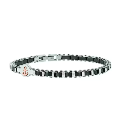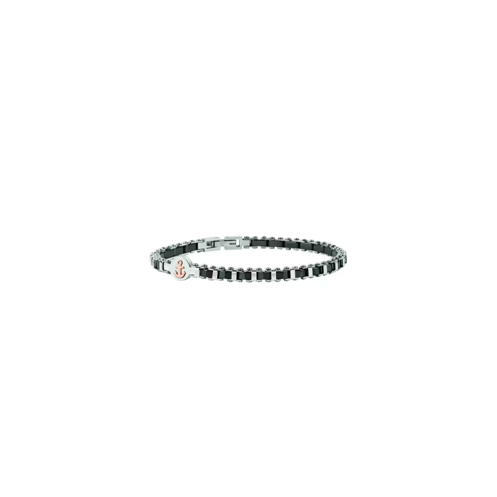 Bracciale In Acciaio Modello A Maglia Con Piastre In Ceramica Lucida nere.