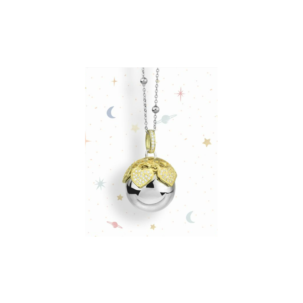 Collana con ciondolo sonoro e coppetta placcata con pavè di zirconi.