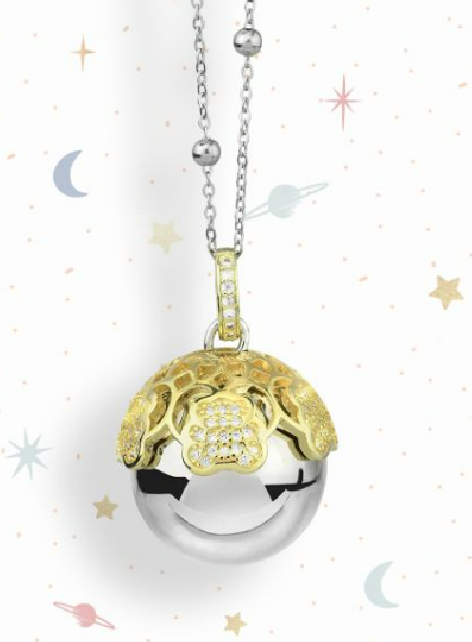 Collana con ciondolo sonoro e coppetta placcata con pavè di zirconi.