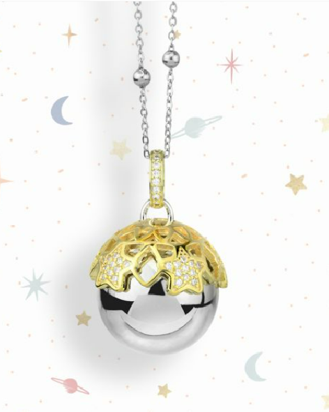 Collana con ciondolo sonoro e coppetta placcata con pavè di zirconi.