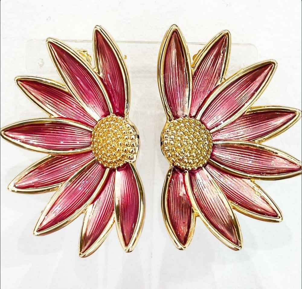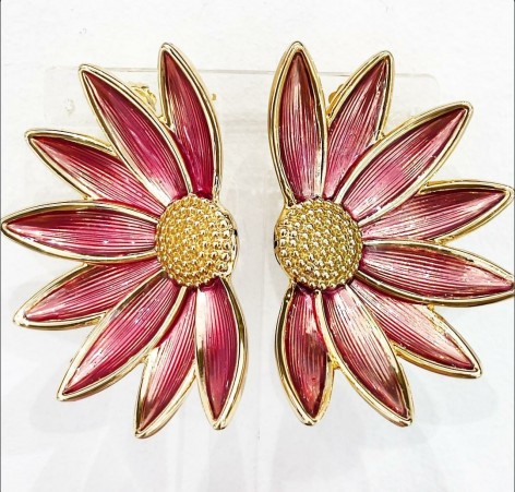 Orecchini In Metallo Modello Maxi Margherita, Lucido, Elletroformato con Smartature Magenta. Chiusura con fusto in Argento.