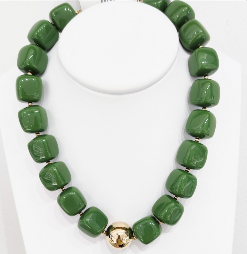 Collana in acciaio placcato oro composta da pietre naturali colorate.