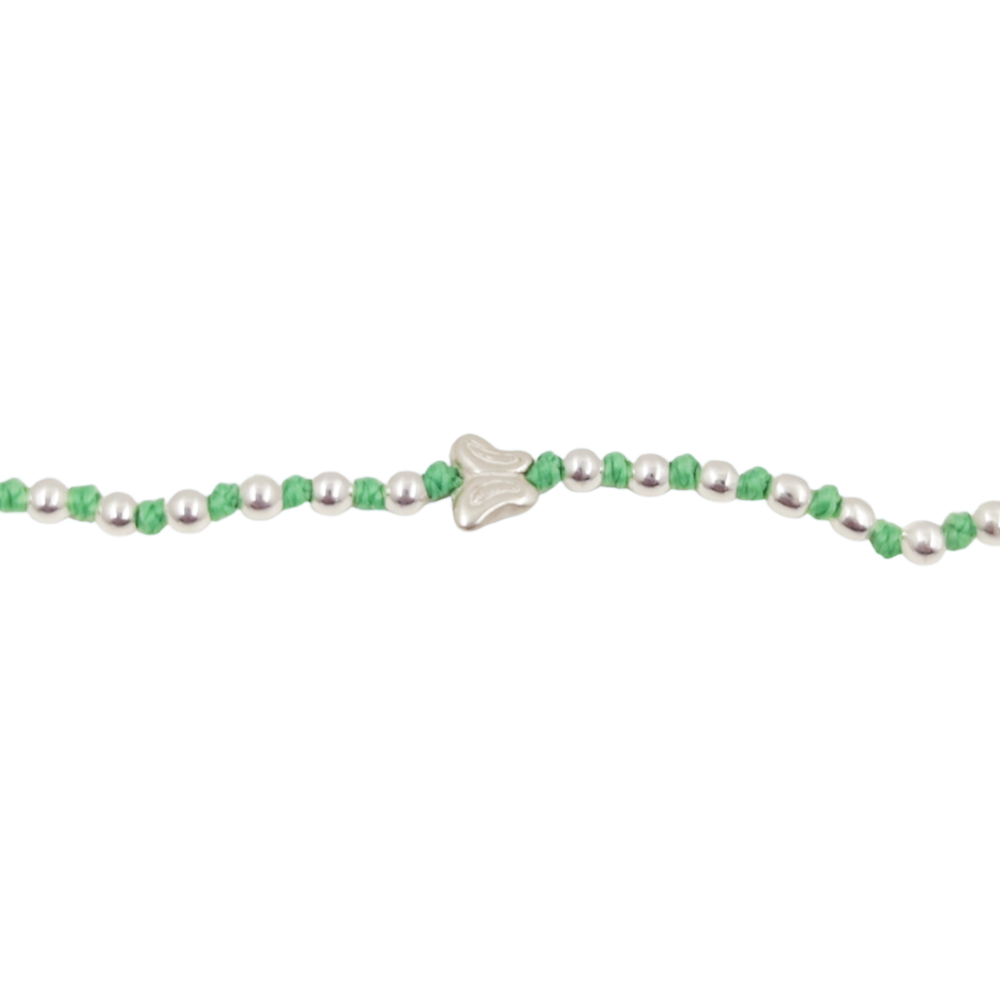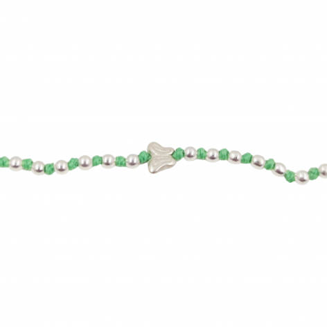 Bracciale in Tessuto Verde Con Piccole Pepite In Argento 925 E Farfalla Centrale.