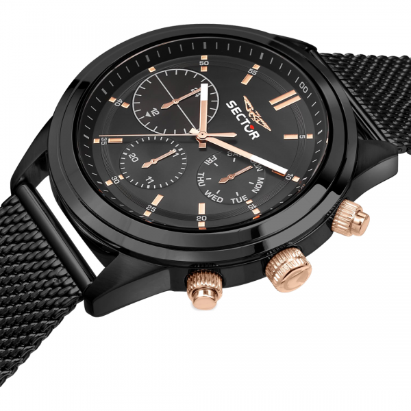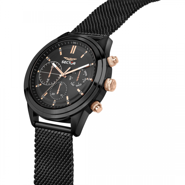 Cassa: Acciaio Nero Con Quadrante NEro Ed Indici Rosé