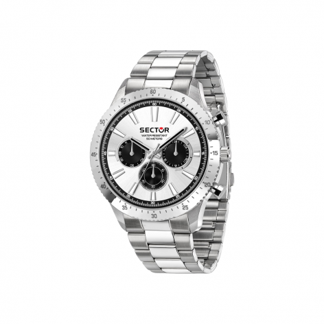 Cassa: Acciaio Con Ghiera Fissa Numerata, Quadrante Silver Con Sub-Quadranti Neri