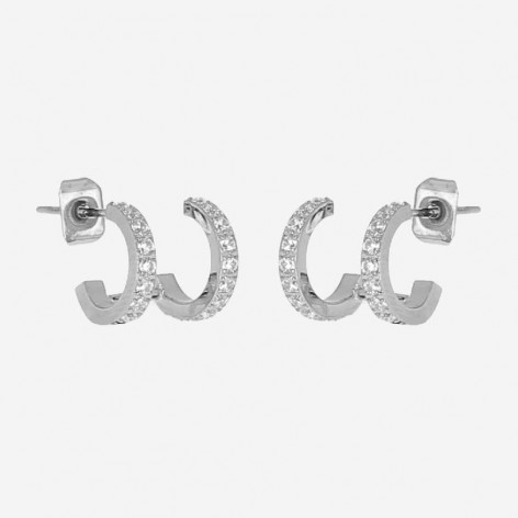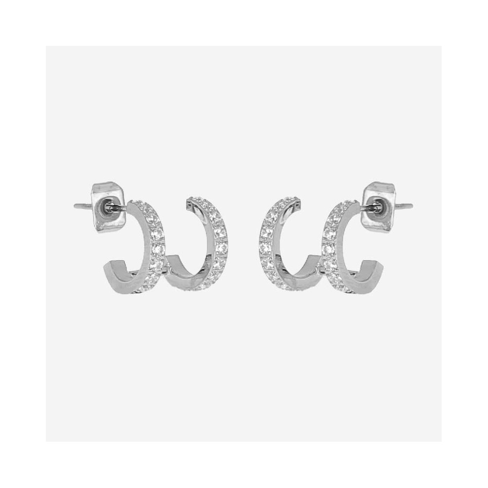 Orecchini In Acciaio con Doppio Cerchio Zirconato