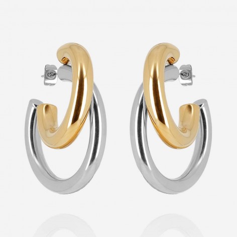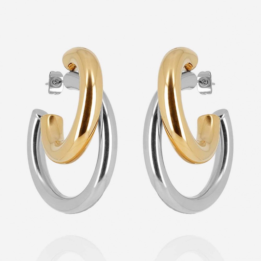 Orecchini a Cerchi Bombati Sovrapposti In Acciaio Oro e Argento