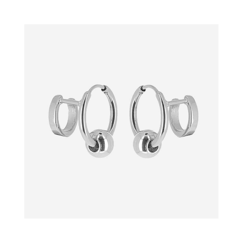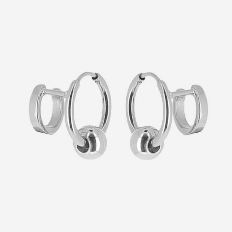 Orecchini In Acciaio con Doppio Cerchio e Sfera
