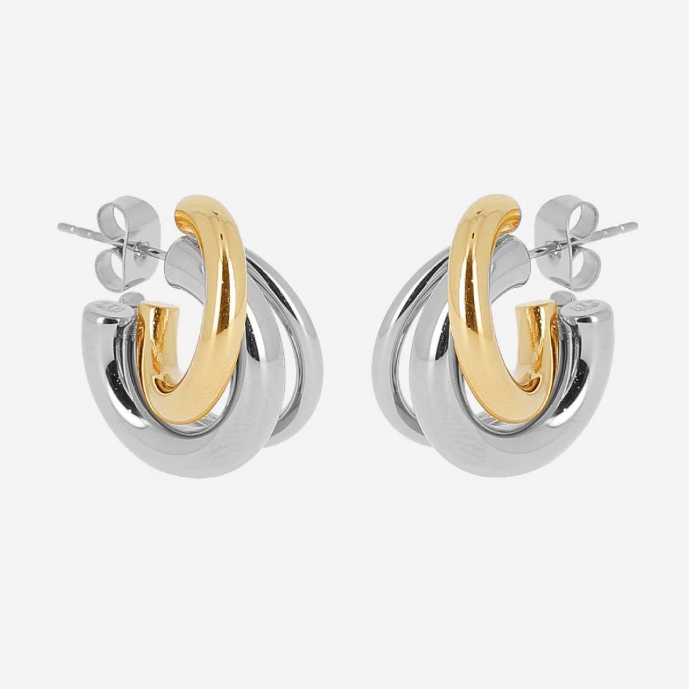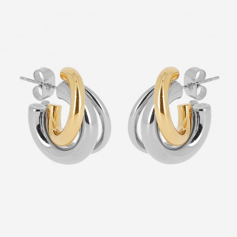 Orecchini a Cerchi Bombati Sovrapposti In Acciaio Oro e Argento