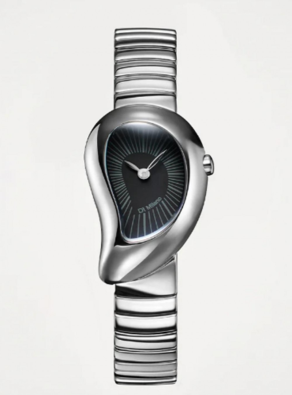 Linee fluide e volumi organici definiscono una cassa che rompe le regole della simmetria. Il metallo si modella come fosse liquido, dando vita a una silhouette morbida e avvolgente. Estetica scultorea, pensata per trasformare l’orologio in un oggetto personale e distintivo.