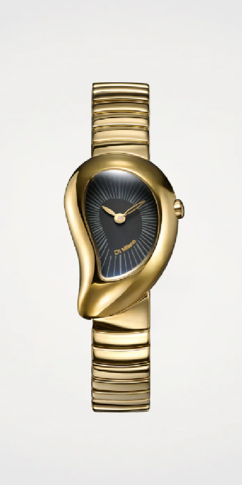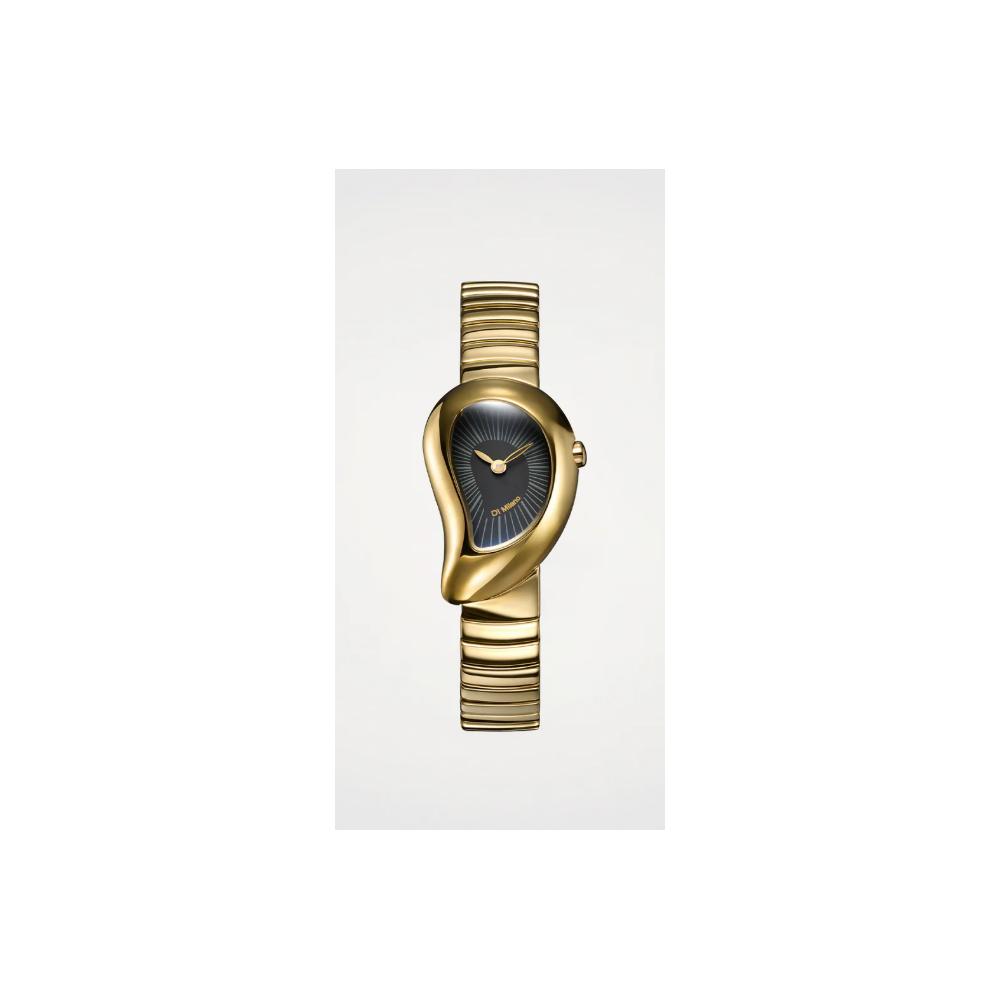Linee fluide e volumi organici definiscono una cassa che rompe le regole della simmetria. Il metallo si modella come fosse liquido, dando vita a una silhouette morbida e avvolgente. Estetica scultorea, pensata per trasformare l’orologio in un oggetto personale e distintivo.