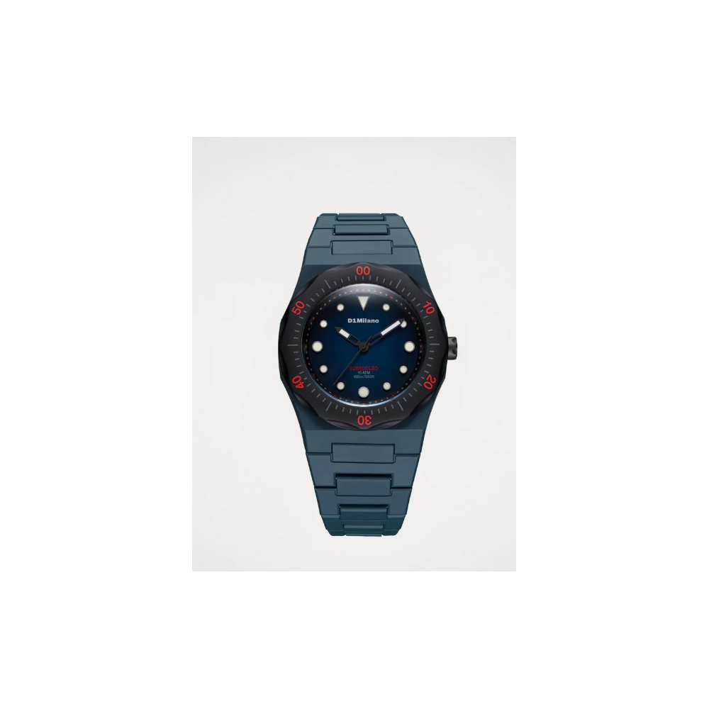 Realizzato con una cassa in policarbonato soft-touch, questo orologio presenta un quadrante in ottone blu e vetro minerale antiriflesso. Il cinturino integrato è progettato per una vestibilità ergonomica, offrendo un aspetto moderno, monocromatico e discreto. Come suggerisce il nome, questo modello consente una maggiore profondità d'acqua di 10 ATM.