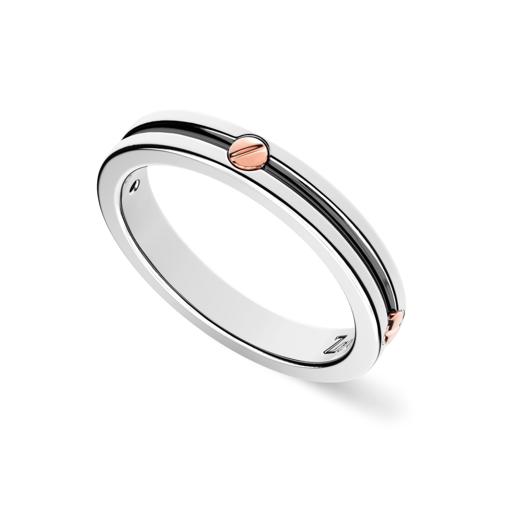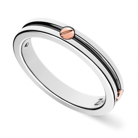 Anello in Argento 925% Con Viti Rosé Ed Inserto Nero.