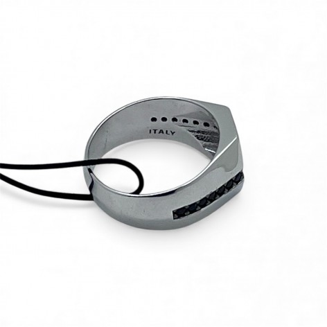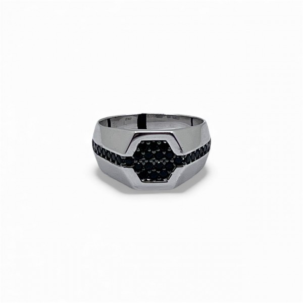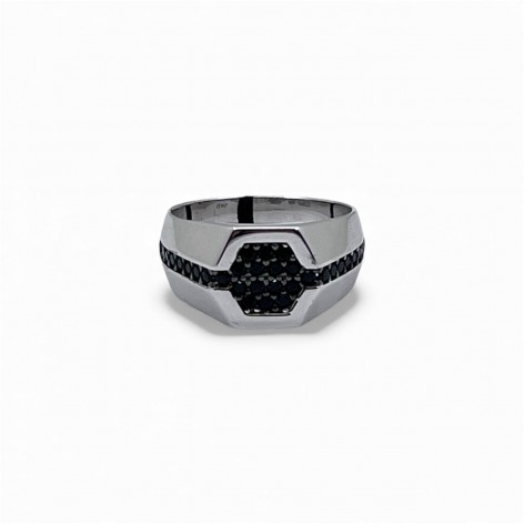 Anello Zancan In Argento 925 E Pietre Onice Nere. L'Anello Dalla Forma Esagonale Presenta Incastonatura Sulla Faccia Superiore di Pietre in Onice Che Si Ripercorre Anche Sul Gambo Dell'Anello.
